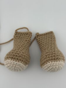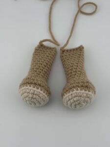 Add filling until about halfway down the leg. Fold and close both sides with 6 sc.