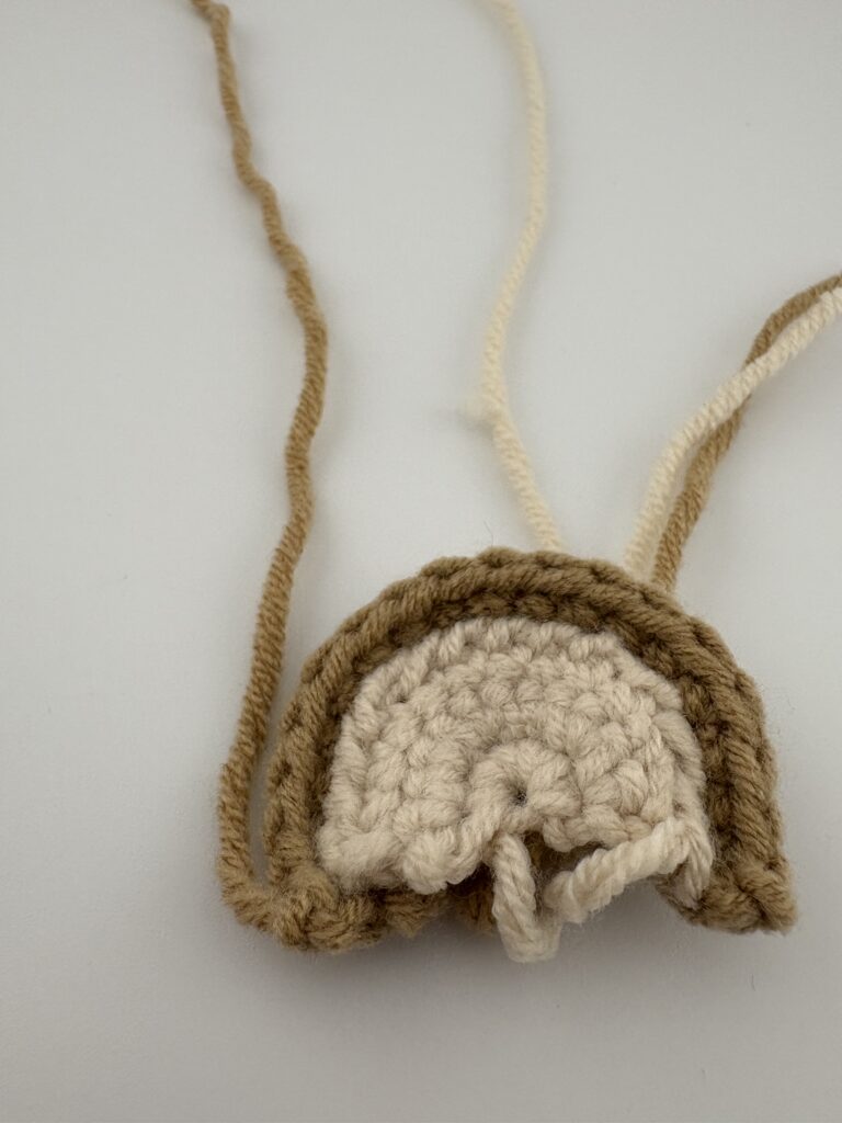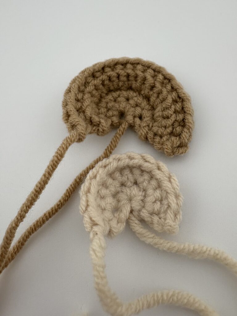 R17: with beige – 1 dec, 8 sc, 1 dec; with khaki – 4 sc, 1 dec – rep 4x [30]